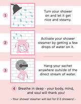 How To Use: Simply wet your shower steamer and hang your sachet anywhere outside of the direct stream of water. Enjoy the spa-like aromatherapy experience!